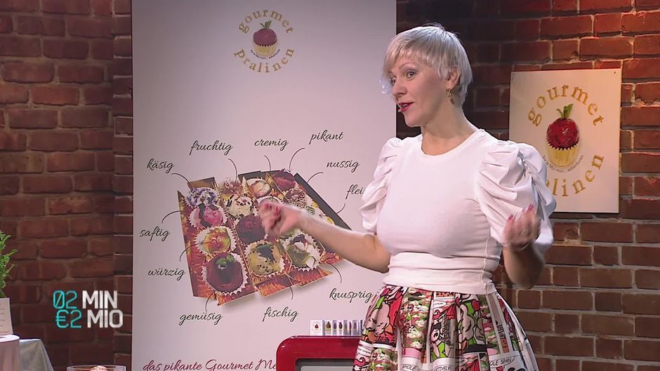 Hohen Genuss erleben die Investoren, wenn Petra Mira Kargl aus Wien ihre Gourmet Pralinen präsentiert. Sie will damit den Partyservice im Handel revolutionieren. Die Pralinen umfassen acht verschiedene Speisen und Geschmäcker in einer Box. Ob Bluecheese, Speck, Fisch, vegetarisch oder vegan: Die Hobbyköchin bietet mit ihren Häppchen in Pralinenform nicht nur eine pikante, handgemachte Augenweide, sondern wahre Geschmackserlebnisse. Trifft sie damit auch den Geschmack der Investoren?