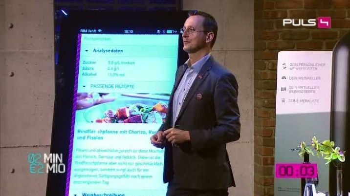 Bernhard Gschwantner aus Wien hat mit seinem Partner "Unser Wein", den digitalen Weinkeller für die Hosentasche, entwickelt. Bei 2 Minuten 2 Millionen will er mit seinem Start-Up die Investoren überzeugen.