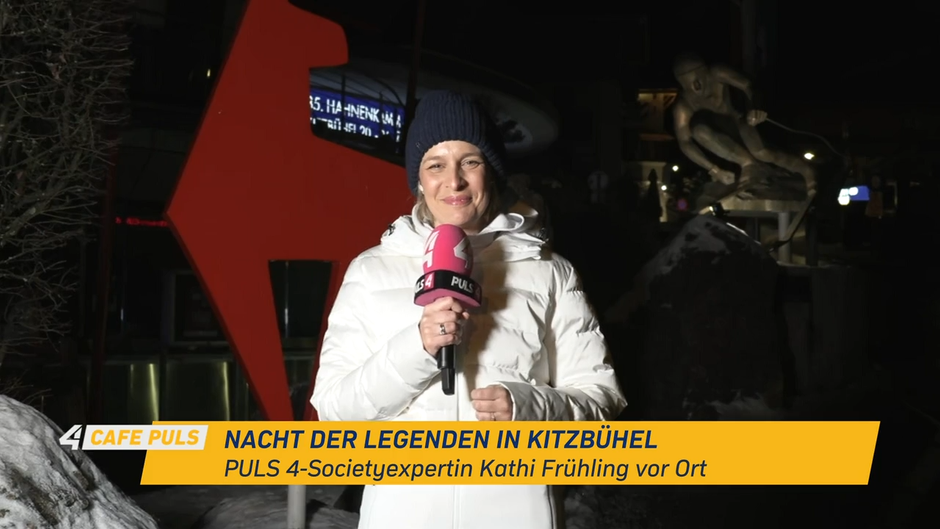 PULS 4-Societyexpertin Kathi Frühling vor Ort