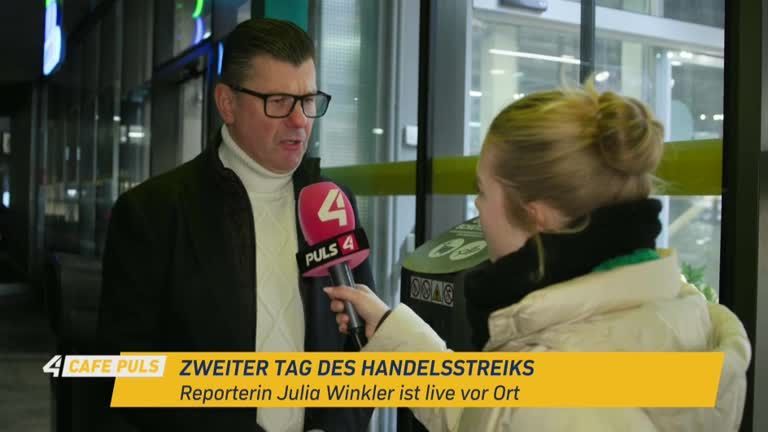 Seit Donnerstag laufen die Warnstreiks im Handel. Davon sind nicht nur Großhandel und Buchläden betroffen, sondern auch Lebensmittelgeschäfte. Unsere Reporterin Julia ist live vor einem großen Lebensmittelgeschäft.