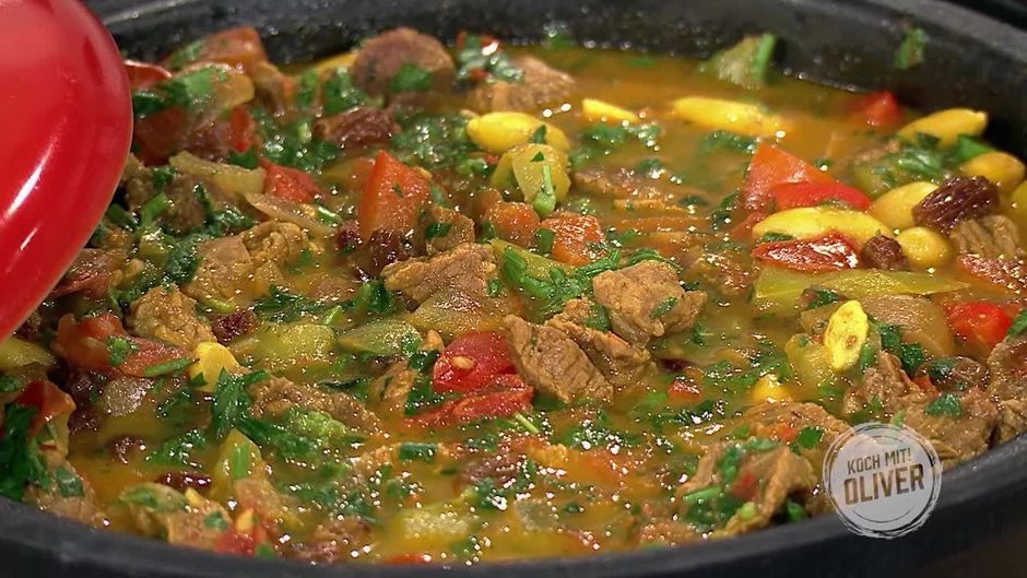 Herzhafte Tajine mit zartem Lamm und knackigem Gemüse.