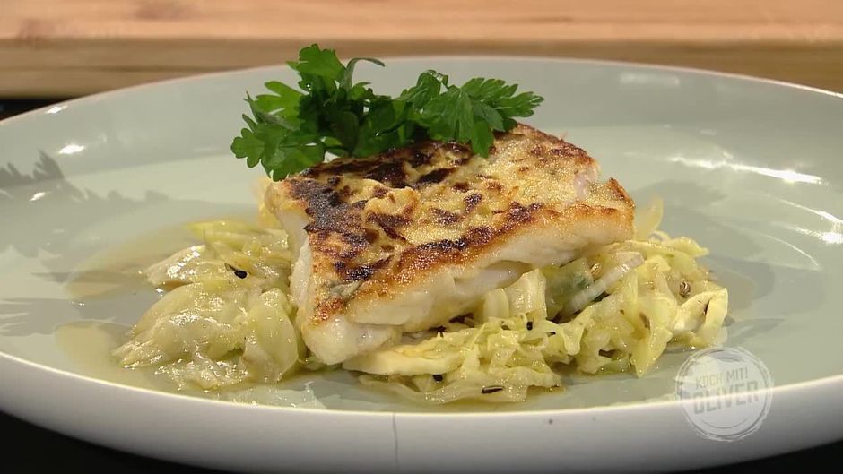 Zander in Senfkruste auf Bierkraut