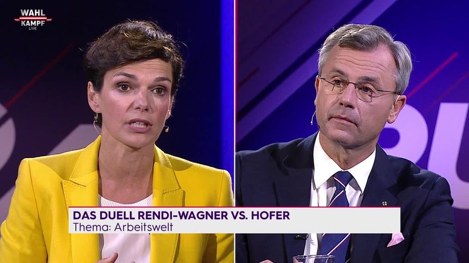 Pamela Rendi-Wagner wirft Norbert Hofer im finalen Wahlduell vor, dass die FPÖ Politik "am Rücken der Arbeitnehmerinnen und Arbeitnehmer" mache. Ein Paradebeispiel dafür sei die Einführung des 12-Stunden-Tags.