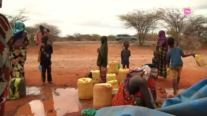 Auf der Flucht vor der Dürrekatastrophe im Nordosten von Somalia bleibt vielen Familien nichts anderes übrig, als sich mit verschmutzen Wasser einzudecken, damit der Durst halbwegs gestillt werden kann.