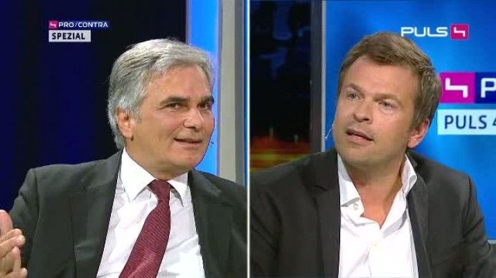 Bundeskanzler Werner Faymann, PULS 4-Gründer Markus Breitenecker und ÖIAG-Chef und Ex-Magna-Manager Siegfried Wolf diskutieren in "Pro & Contra - Der PULS 4 News-Talk": Ist der Unmut der Bürger durch die Sozialdemokratie aufzuhalten oder fehlen Rezepte und Visionen für die heutige Lebensrealität? Warum gibt es in so einem reichen Land wie Österreich noch immer so viele "Arme"? Und was kann Bundeskanzler Werner Faymann für sein Land bewegen?