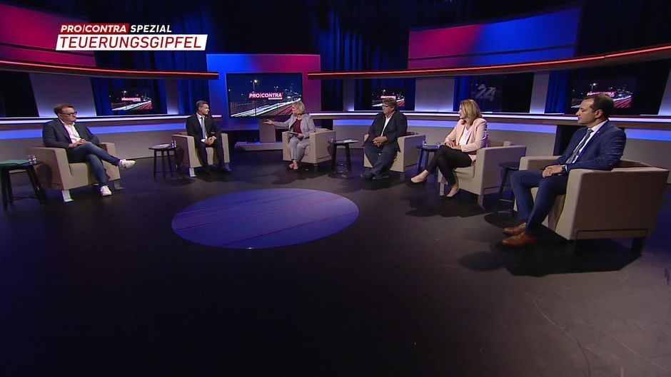 Beim Pro und Contra Teuerungsgipfel diskutieren Peter Weidinger (ÖVP), Josef Muchitsch (SPÖ), Dagmar Belakowitsch (FPÖ), Markus Koza (Die Grünen) und Gerald Loacker (NEOS) über die Teuerung und was die Politik dagegen unternehmen kann.