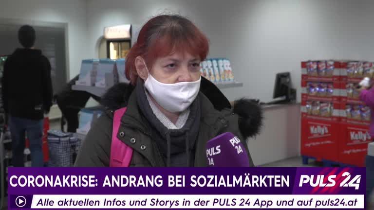 Die Corona-Krise hat die Situation für armutsgefährdete Menschen in Österreich verschärft. PULS 24 Reporterin Nadja Buchmüller spricht mit Kunden eines Sozialmarkts in Wien Floridsdorf über ihre Lebenssituation.