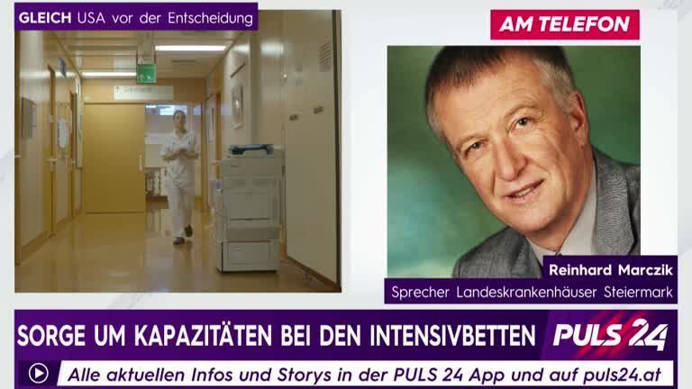 Der Sprecher der Landeskrankenhäuser Steiermark, Reinhard Marczik, im Interview mit PULS 24 Anchorwoman Bianca Ambros über die Intensivkapazitäten in steirischen Spitälern.