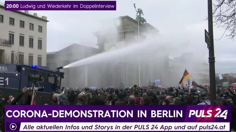 Corona-Proteste in Berlin: Polizei schreitet mit Wasserwerfern ein