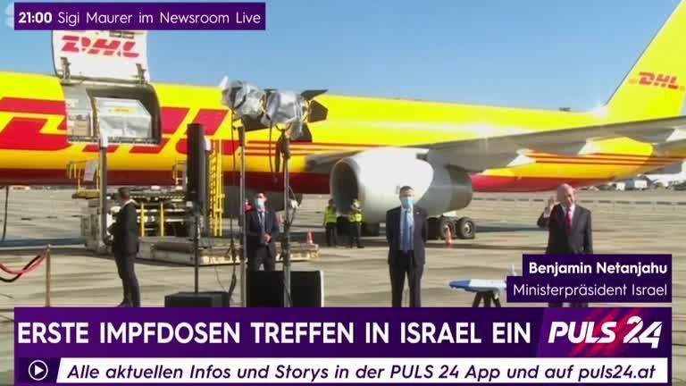 Eine erste Ladung Corona-Impfstoff ist am Mittwoch in Israel eingetroffen, ein Frachtflugzeug landete auf dem internationalen Flughafen Ben Gurion bei Tel Aviv.