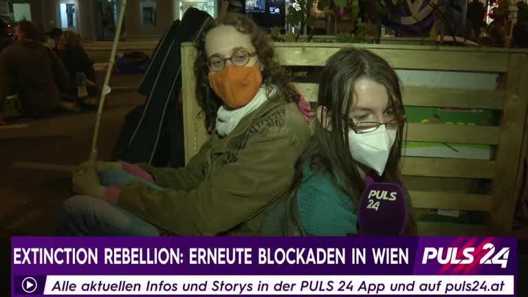Eine seit Donnerstagabend laufende Blockade der Klimaaktivisten von Extinction Rebellion (XR) im Bereich des Karlsplatzes in der Wiener Innenstadt haben die Manifestanten auch über Nacht fortgesetzt. In der Friedrichstraße Ecke Operngasse harrten in der Früh laut Polizei rund 30 Demonstranten aus und blockierten den Bereich teilweise. Auch eine technische Sperre war errichtet worden. PULS 24 Reporter Paul Batruel berichtet.