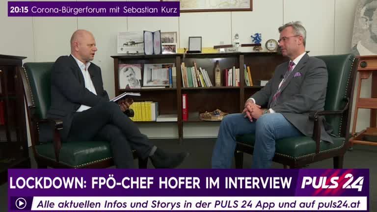 FPÖ-Parteivorsitzender Norbert Hofer im Interview mit PULS 24 Chefredakteur Stefan Kaltenbrunner zu seiner Kritik am Corona-Management der Regierung.
