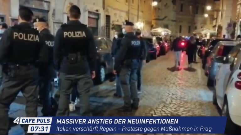 Italien verschärft die Schutzvorkehrungen gegen die Coronavirus-Epidemie. Lokale wie Bars und Restaurants müssen um Mitternacht schließen. In Tschechien protestieren die Menschen gegen die Corona-Maßnahmen.