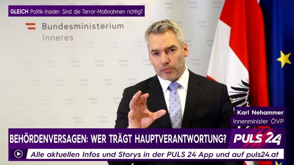 PULS 24 Anchorwoman Alexandra Wachter spricht mit Innenminister Karl Nehammer über eine Reform des Bundesamts für Verfassungsschutz und die Behördenpannen im Vorfeld des Terroranschlags vom 2.November.