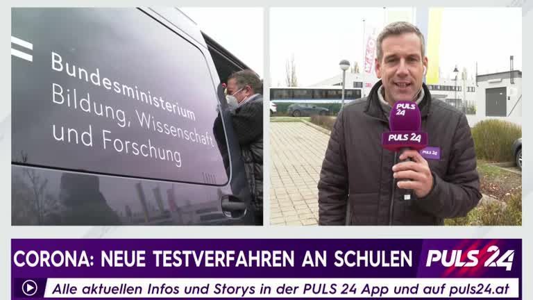 Puls 24 Reporter Werner Sejka hat sich die die neue Teststrategie an Schulen angesehen. Kinder, die sich dort als Verdachtsfälle herausstellen, sollen zunächst einen herkömmlichen PCR-Test unterzogen werden. Lehrpersonal und Mitschüler werden mithilfe eines neuen „RT-Lamp“-Verfahrens auf eine mögliche Erkrankung getestet, welcher mithilfe eines zuvor alamierten Testbuses zur Verfügung gestellt werden soll.