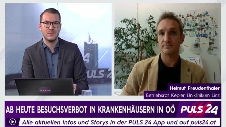 Seit Dienstag, dem 10.11., gilt aufgrund der hohen Infektionszahlen in Oberösterreich ein striktes Besuchsverbot in den Krankenhäusern des Bundeslandes. Der Betriebsrat des Kepler Uniklinikum in Linz ist dazu zu im PULS 24-Talk.