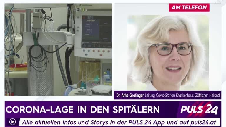 Primarin Athe Grafinger, Leiterin der Corona-Station im Krankenhaus Göttlicher Heiland in Wien, schildert im Interview mit PULS 24 Anchorwoman Bianca Ambros die Situation in den Spitälern.