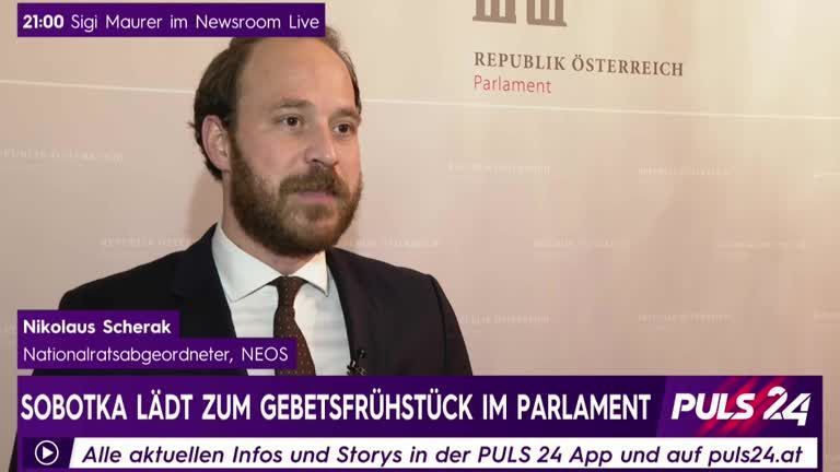 Nationalratspräsident Wolfgang Sobotka (ÖVP) hat am Dienstagabend zu einer "Online-Gebetsfeier" im Parlament geladen. NEOS-Nationalratsabgeordneter Nikolaus Scherak fordert im Interview mit PULS 24 Reporterin Aida Mujanovic eine klare Trennung zwischen Religion und Staat.