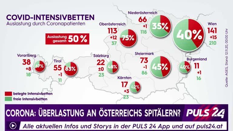 Die Lage in den Spitälern spitzt sich weiter zu. Die Auslastung bei den Intensivbetten ist in manchen Bundesländern bereits kritisch.