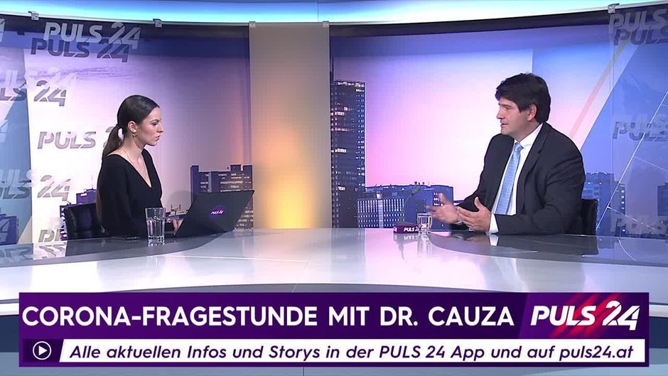 Der Abteilungsvorstand der internen Abteilung des Herz-Jesu Krankenhaus in Wien, Prim. Doz. Dr. Edmund Cauza, gibt im PULS 24 Studio bei Moderatorin Alina Marzi Antworten auf zahlreiche eingesendete Fragen von Zuseherinnen und Zusehern.