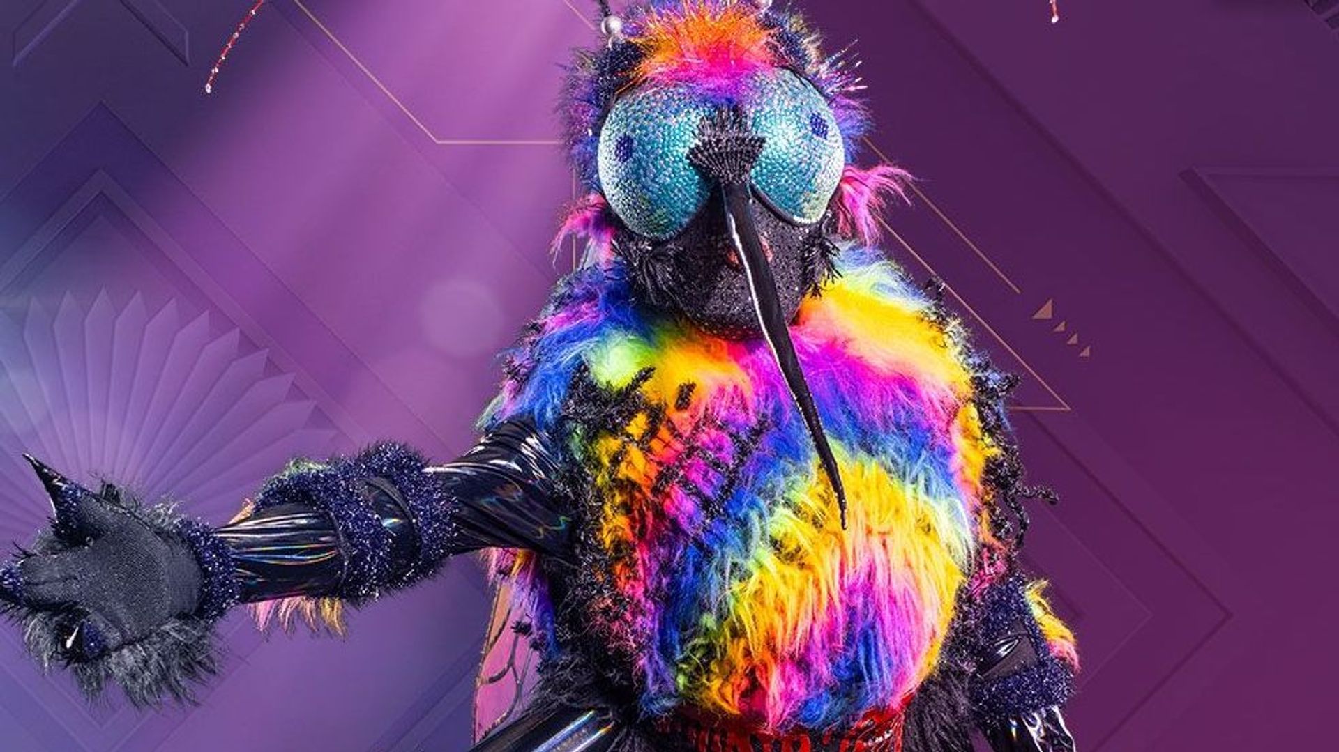 Mit dem von Hand eingeknüpften Lametta und den Scheinwerfern glitzert sie eindeutig um die Wette. Ihr Unterleib pulsiert in leuchtenden Rottönen. Die Gelsentaille ist geschnürt. Die sechs schlanken Beine haben eine dunkel irisierende Haut. Die Facettenaugen bestehen aus einzelnen, von Hand aufgeklebten, schillernden Pailletten. Die Fühler auf ihrem Kopf zieren Glasperlen. Insgesamt wurden für das Kostüm über 40 verschiedene Materialien verarbeitet. So viele Fakten und noch immer eine Frage: Wer versteckt sich hinter diesem Kostüm?