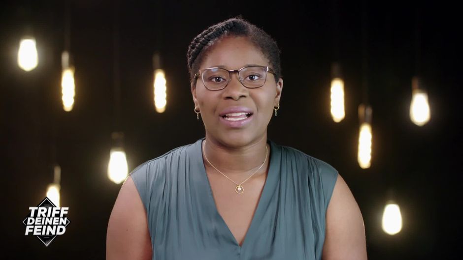 Precious spricht in "Triff deinen Feind" zum Thema Rassismus/Nationalität. Ihre Hashtags: #black_lives_matter #gleichberechtigung