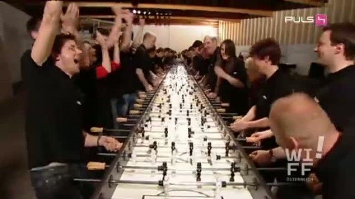 Am Wuzzeln findet so gut wie jeder Mann seine Freude, deshalb hatten zwei Tischler jetzt eine fantastische Idee. Sie wollen den längsten Tischfußballtisch aller Zeiten bauen und darauf sollten dann 116 Spieler spielen können.Ob das funktioniert? Wie wuzzelt man gegen 116 Spieler? Welches Material braucht man für den längsten Wuzzler der Welt? Wie baut man ihn zusammen? Gibt es dafür spezielle Spielregeln? Wie groß wird der Riesen-Wuzzler?